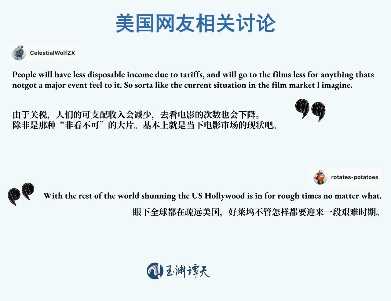 现实上,谭从近期正在持续逃踪美国社交平台上的相关会商,发觉有99。2%的美国网友都认为美国对美国片子业形成了损害。