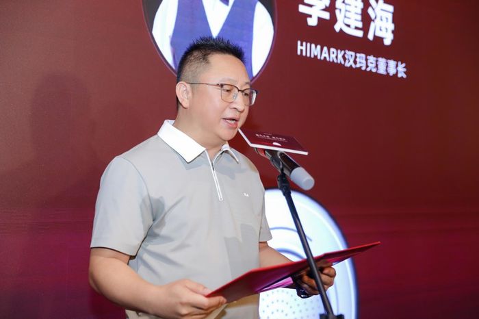 HIMARK汉玛克董事长李建海正在致辞中暗示,HIMARK汉玛克品牌一直「科技取美学共生」的,努力于将智能恒温花洒打制为「空间艺术品」。