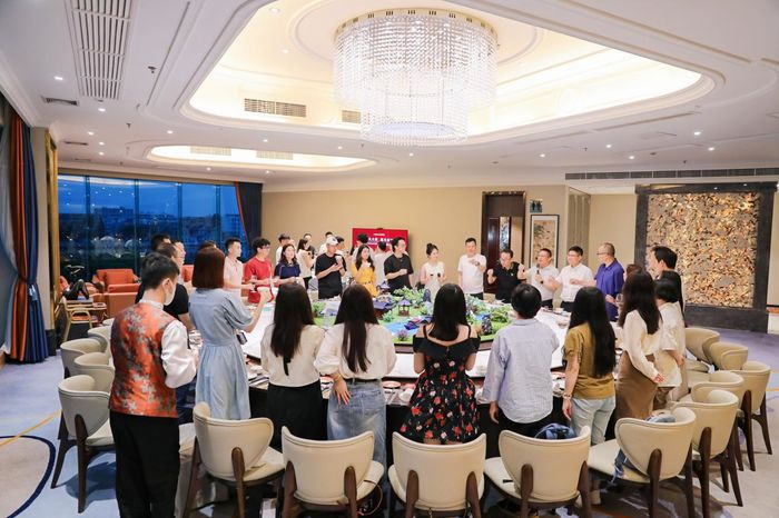 随后,取会嘉宾配合起身为晚宴祝酒。晶亮酒杯正在灯光下交相辉映,正在“预祝展会成功”的呼声中,夜风轻漾裹挟着灯火璀璨。
