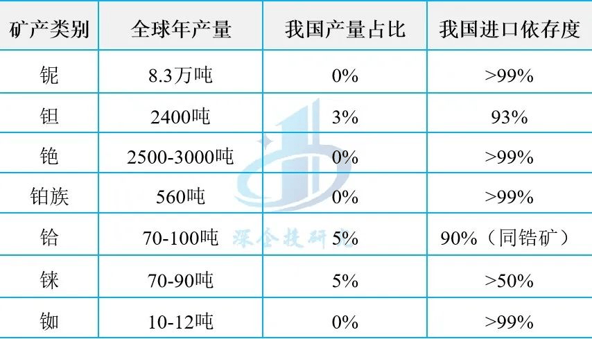第四类是国内根基无出产,供应风险高的计谋性矿产。这类矿产大大都是国内无可采储量的罕见金属,对外依存度根基正在90%以上,因为产量低、全球供应少,且取国防军工、航空航天等财产亲近联系关系,客不雅上跟着地缘严重场面地步加剧存正在卡脖子风险,具体包罗铌、钽、铯、铂族、铪、铼、铷等。对于这类金属,需要提拔资本收受接管取分析操纵能力,支撑行业龙头企业扩大原料矿石、精选矿、再生材料、初级金属的库存,同时依托国度计谋储蓄库加强对精辟金属的收储。