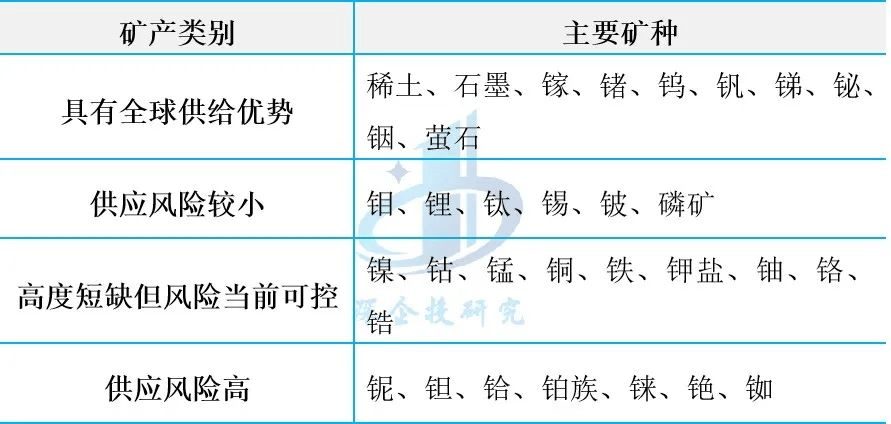分析我国各类矿产的可采储量和当前产量正在全球所占比沉,可将我国的计谋性矿产(剔除大能源矿产如石油、天然气)分为如下四类。