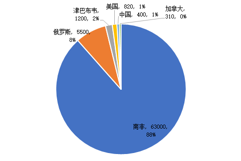 ——全球出产环境。按照美国地质查询拜访局(USGS)的数据,矿石产量约160万吨,产量位居前列的国度顺次为(50万吨)、南非(40万吨)、中国(14万吨)、美国(10万吨)、莫桑比克(9万吨)、印度尼西亚(9万吨),合计占全球总产量的82。5%,如下图所示。