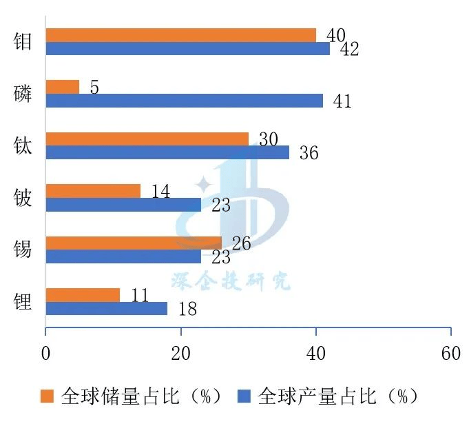 第一类是具有全球供给劣势的计谋性矿产。这类矿产我国的产量和储量兼具劣势,全球储量占比跨越20%,而现有产量占比跨越50%,从导全球供给(包罗出口)款式,可以或许影响全球价钱波动,具体包罗稀土、石墨、镓、锗、钨、钒、锑、铋、铟、萤石等。