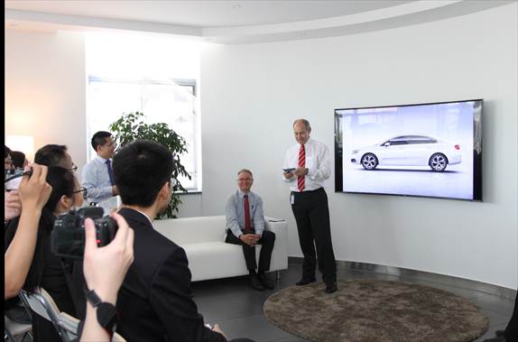 “这款三层隔音玻璃由2块半钢化的玻璃通过PVB胶正在温度和压力感化下黏结一路,特殊的布局使其正在吸热、降噪以及平安方面极具劣势,代表了高级轿车市场的领先水准。”来自圣戈班的余军辉先生向正在场引见了三层隔音玻璃的构制道理。