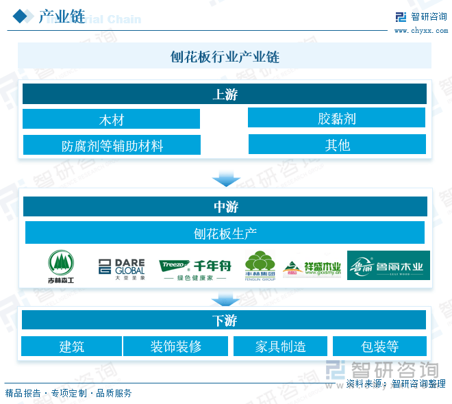 刨花板行业财产链上逛次要为木材、胶黏剂以及防腐剂等辅帮材料。原材料的质量间接影响到刨花板的物能和化学机能。例如,木材的树种、含水率、杂质含量等城市影响刨花板的强度、不变性和耐候性。高质量的原材料可以或许出产出机能更不变、原材料的价钱波动间接影响到刨花板的出产成本。当原材料价钱上升时,刨花板的出产成本也会响应添加,从而影响企业的盈利能力和市场所作力。财产链中逛次要为刨花板的出产制制。财产链下逛次要使用于建建、粉饰拆修、家具制制以及包拆等范畴。下逛财产如家具制制、建建粉饰、包拆材料等对刨花板的需求量间接影响刨花板行业的出产规模和成长趋向。当这些行业需求兴旺时,刨花板的销量和价钱往往会上升,反之亦然。因而,财产链下逛的市场需求是刨花板行业成长的主要驱动力。