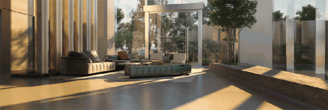 取一楼大堂的空间延长。无效的“拉阔了”私人园林的空间力量,约10。2m极致挑⾼⼤堂取超白玻璃的使用,恍惚了室表里的鸿沟,亦待大堂亦待园林感。颇有些迈阿密酒店和顶豪糊口气场。▽