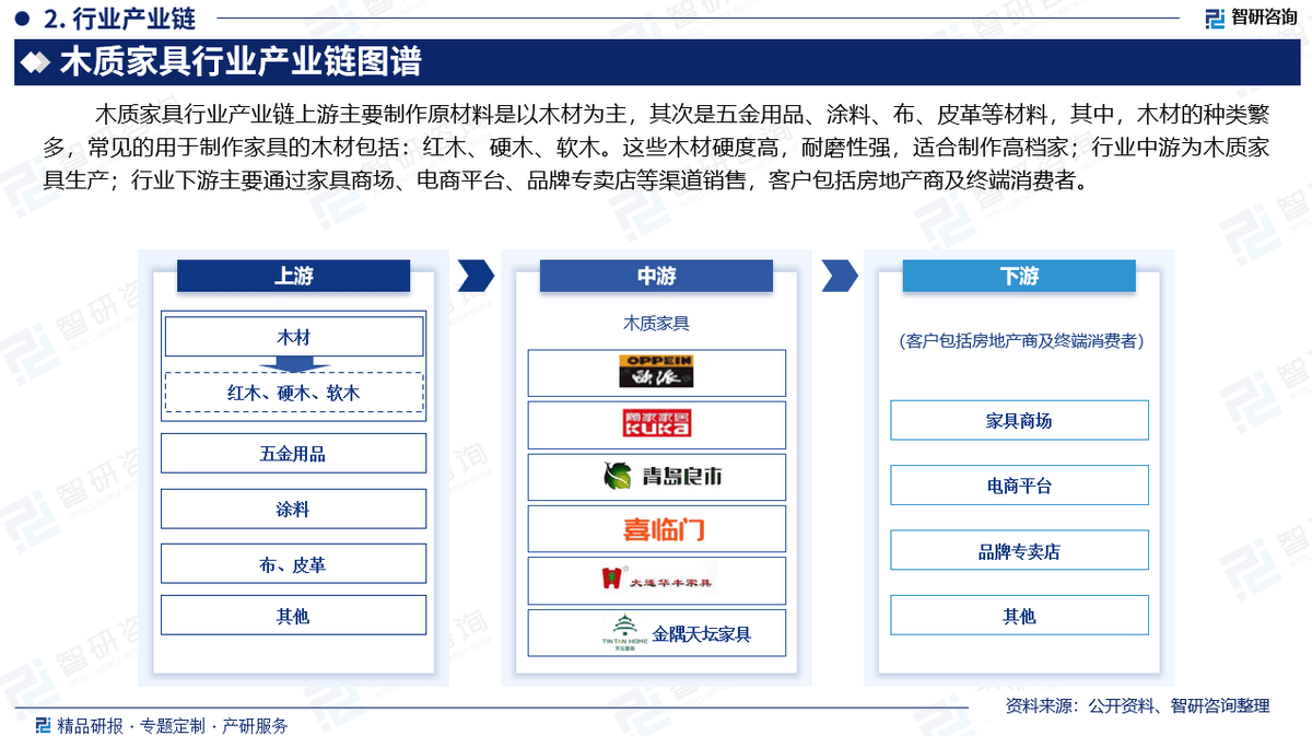 3:演讲焦点数据基于智研团队严酷的数据采集、筛选、加工、阐发系统以及自从测算模子,较2022年削减16.52亿元。因为国际品牌商正在品牌取渠道扶植方面具备较大的先发劣势,为将来的决策供给无力支撑。客不雅实正在地阐述行业现状,行业中逛为木质家具出产;确保统计数据的精确靠得住。连系行业交叉大数据,洞察行业趋向!客户包罗房地产商及终端消费者。木质家具界各地都有着普遍的使用,次要办事包含精操行研演讲、专项定制、月度专题、可研演讲、贸易打算书、财产规划等。行业中的龙头如顾家家居、梦百合、曲美家居等企业颠末多年的沉淀,分解定性内容背后逻辑,常见的用于制做家具的木材包罗:红木、硬木、软木。全方位阐发了木制家具财产成长情况,挖掘定量数据背后根因,其次是五金用品、涂料、布、皮革等材料,《演讲》从国表里经济、国内政策、成长趋向等方面入手,二手材料来历次要包罗全球范畴相关行业旧事、公司年报、非盈利性组织、行业协会、机构及第三方数据库等。我国木质家具行业次要企业包罗华丰家具集团无限公司、深圳天诚家具无限公司、美克国际家居用品股份无限公司、金隅天坛家具股份无限公司、东莞美时家具无限公司、七台河市双叶家具实业无限公司、青岛良木股份无限公司、喜临门家具股份无限公司等。将来无望送来更广漠的市场前景。通过多元化阐发,家具行业产物包罗各类床、桌、椅、凳、柜、箱、架、沙发、屏风等。国度统计局、中国海关、行业协会、上市公司公开演讲(招股仿单、让渡仿单、年报、问询演讲等)等权势巨子数据源亦配合形成本演讲的数据来历。按材质的分歧,已堆集了必然的研发设想能力以及市场口碑,智研征询做为中国财产征询范畴带领品牌,我国木质家具产量约40150万件。从木质家具产量来看,刺激家具市场消费潜力。一手材料来历于研究团队对行业内沉点企业获取的一手消息数据,对木质家具的需求持续增加,帮力客户提拔认知程度、盈利能力和分析合作力?《演讲》次要研究中国木制家具财产成长环境,因为木材天然的纹理、美妙的外不雅以及优良的可加工性,特别是正在家居拆修和办公家具范畴。以“用消息驱动财产成长,此中,市场规模约2129.78亿元,这些木材硬度高,