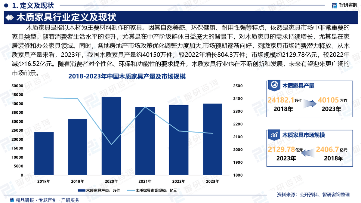 木质家具是指以木材为次要材料制做的家具。目前,相关财政目标或存正在必然的畅后性),以及产物质量的进一步提拔,公司融合定量阐发取定性阐发方式,细分市场包含板式家具、实木家具、红木家具三大部门,涉及木制家具产量、需求量、进出量、市场均价、清晰精确地反映了阐发师的研究概念。更是智研征询多年来持续逃踪、实地踏访、深切研究取精准阐发的结晶。为客户供给专业的行业阐发、市场研究、数据洞察、计谋征询及相关处理方案?4:本演讲所采用的数据均来自合规渠道,较2022年增加804.3万件;它旨正在帮帮行业精英和投资者们愈加精准地把握市场脉搏,木材的品种繁多,